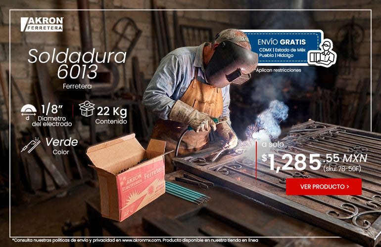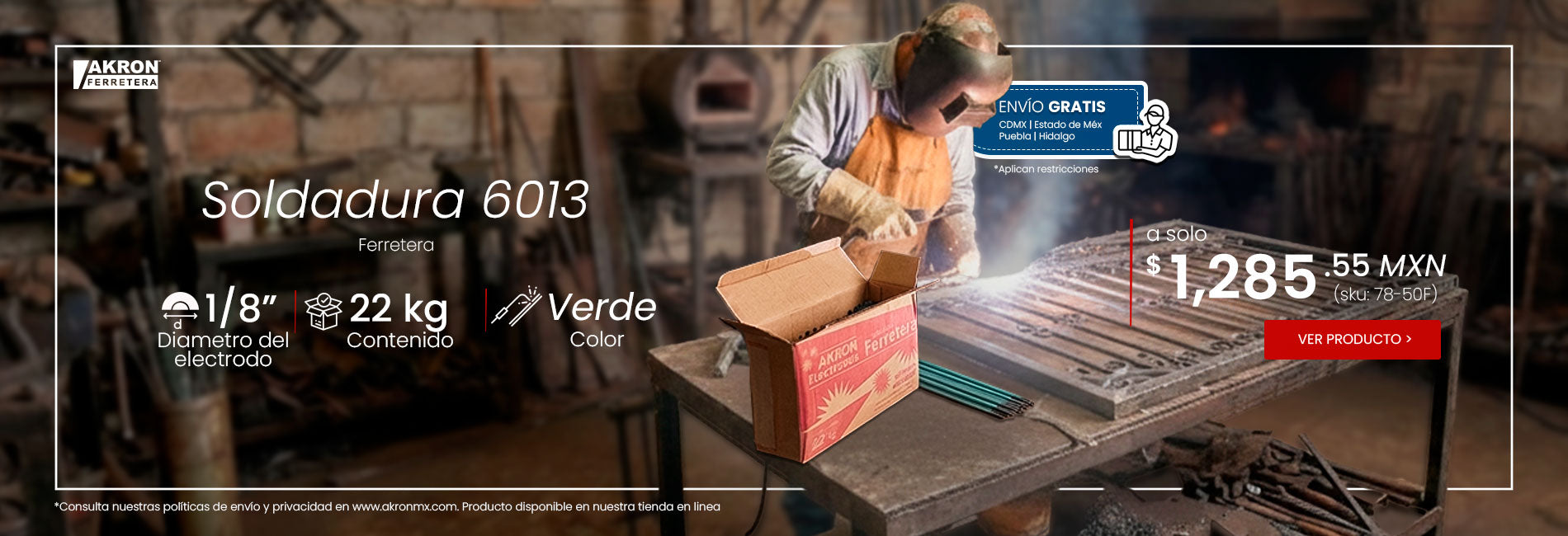 Soldadura 6013 Ferretera Akron 78-50F | 1/8"| Verde | 22 kg