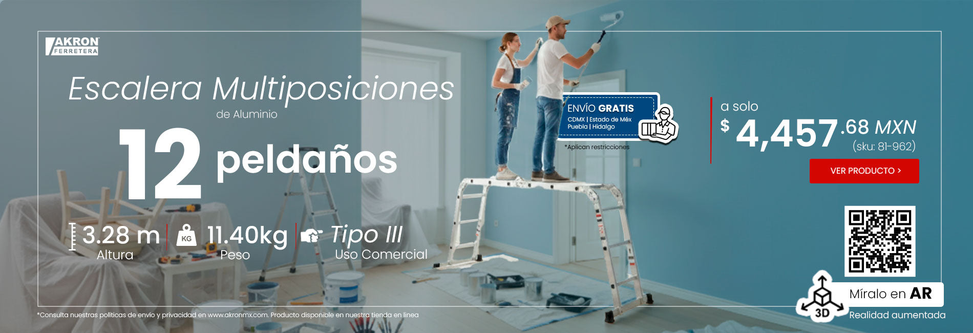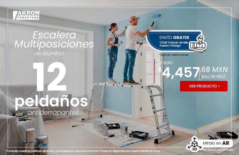 Escalera De Tijera Doble Akron 79-44 | De Aluminio | 1.52m | 8 Escalones | Uso Industrial | Tipo l | Capacidad De Carga 200kg