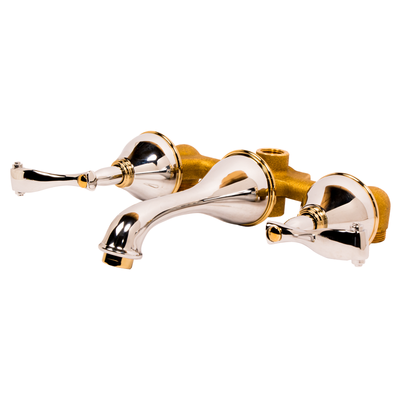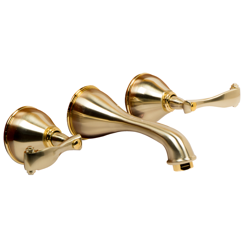 Mezcladora para Lavabo Montaje de Piso/Pared 8” Mod. Da Vinci - Satín y Oro de Pared