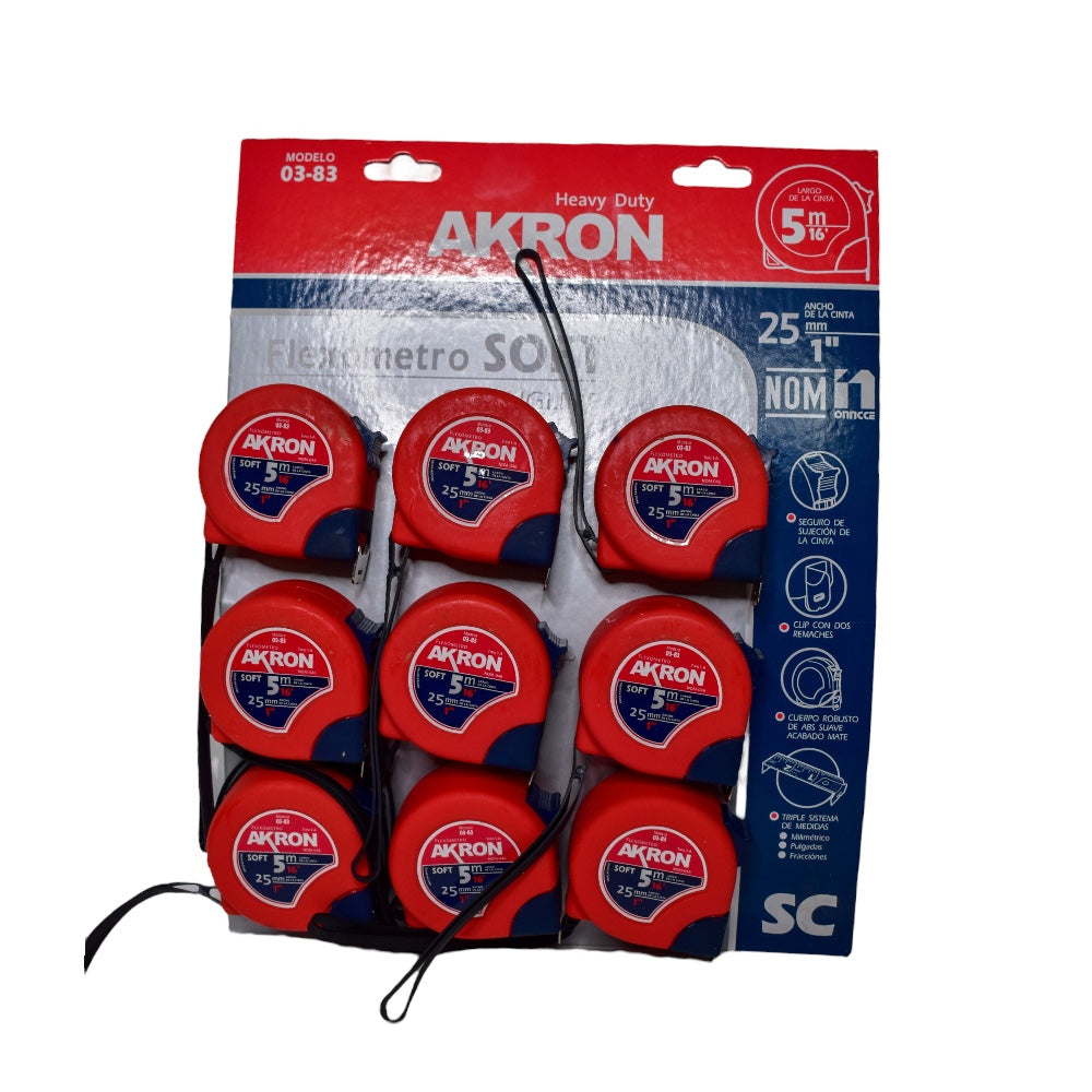 Flexómetro Akron 03-83SC | 5m. x 1" | Blister C/9 Piezas.