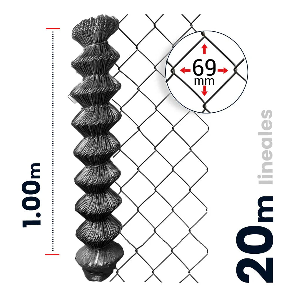 Malla Ciclónica de Acero Galvanizado 1.00 mts x 20 mts, Abertura 63mm, Calibre 12.5