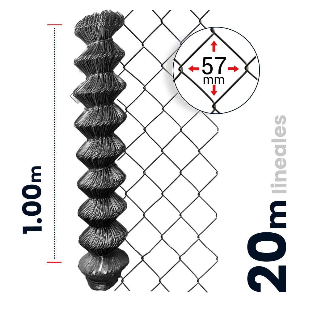 Malla Ciclónica de Acero GalvanizadoAltura: 1.00mAbertura de Rombo: 57mmCalibre: 11Rollo: 20m Lineales