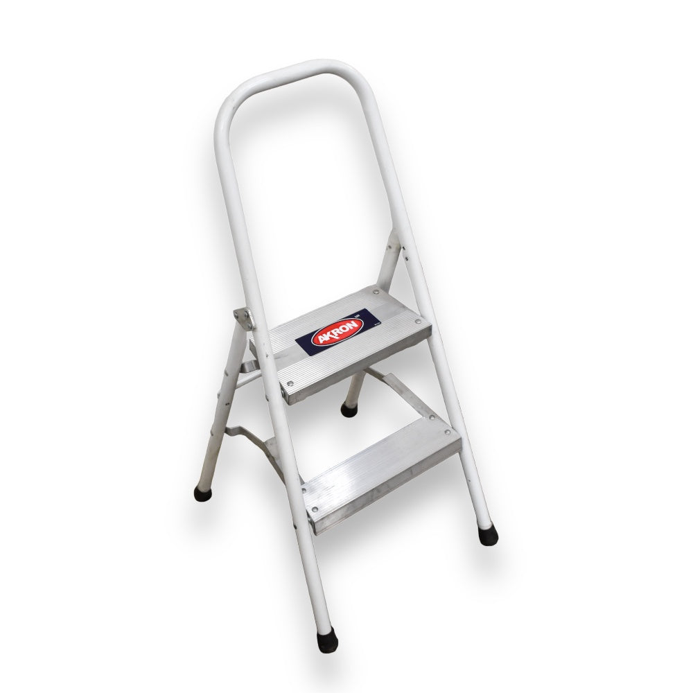 Escalera Taburete Akron 78-38 | De Aluminio | Altura 1.15m | 2 Peldaños | Uso Comercial (Tipo III) color Blanco