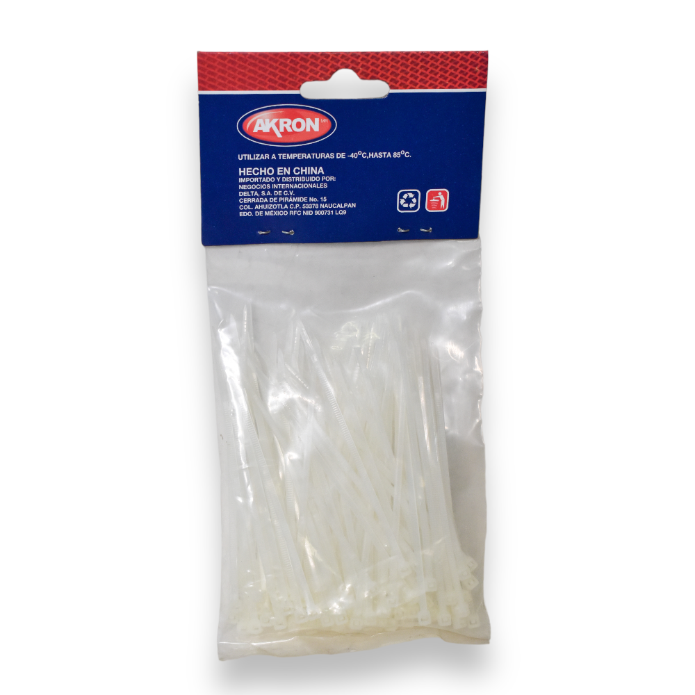 100 Pzs Cinchos de Plástico 2.5 x 100mm Color Blanco