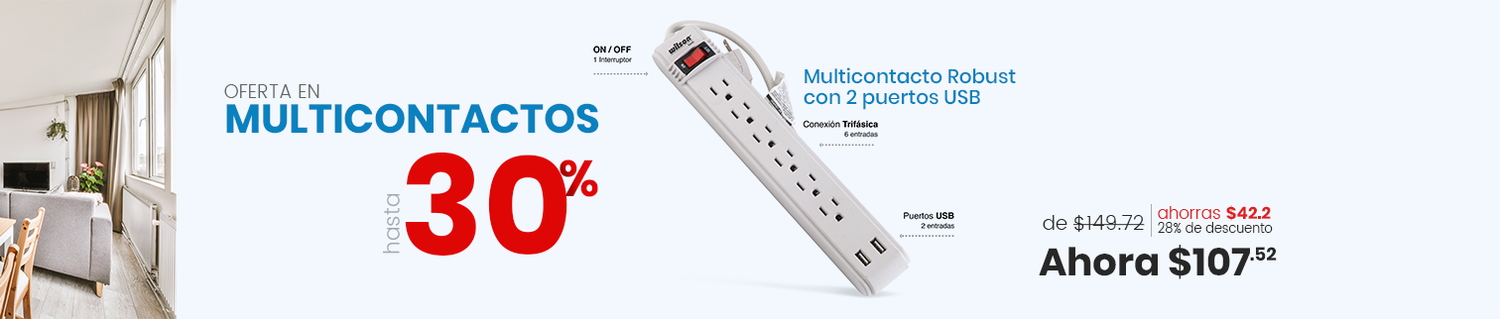 Barra Multicontacto Wilson 40-70 | con 6 Salidas y 2 puertos USB