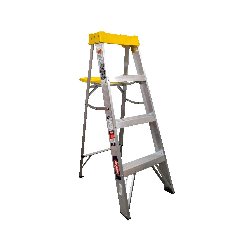 Escalera De Tijera Akron 81-89 | De Aluminio | 1.22m | 3 Escalones | Uso Doméstico | Capacidad De Carga 90kg | Plataforma Plástica