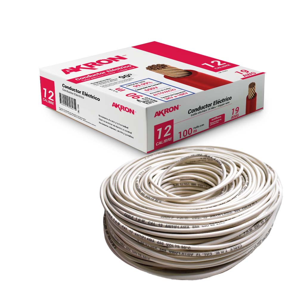 Cable de Cobre Akron 52-12B | Calibre 12 | 90 m | Blanco