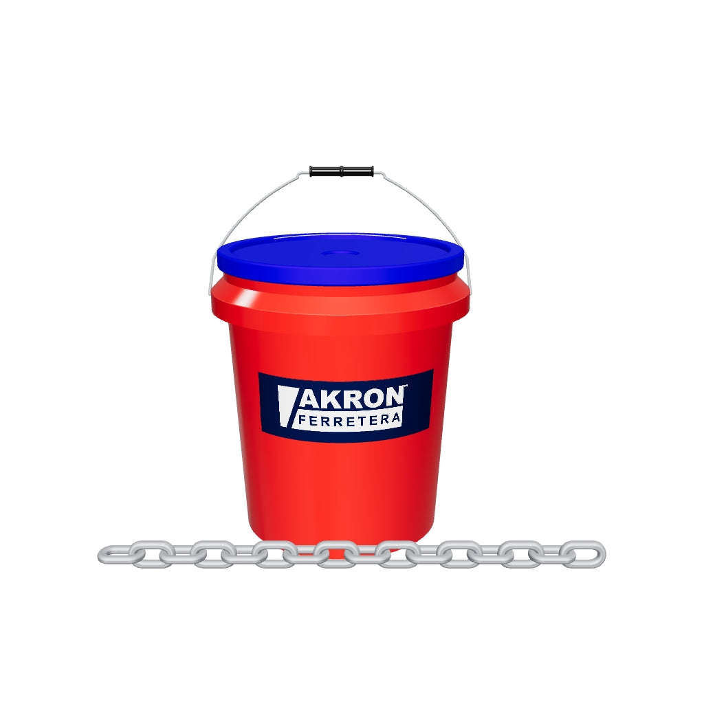 Cadena de acero galvanizado grado 30, electrosoldada, calibre 3/8", presentada en cubeta de 25 kg. Diseñada para aplicaciones generales y de carga ligera a media, con eslabones soldados para mayor resistencia y galvanizado para protección contra la corrosión.