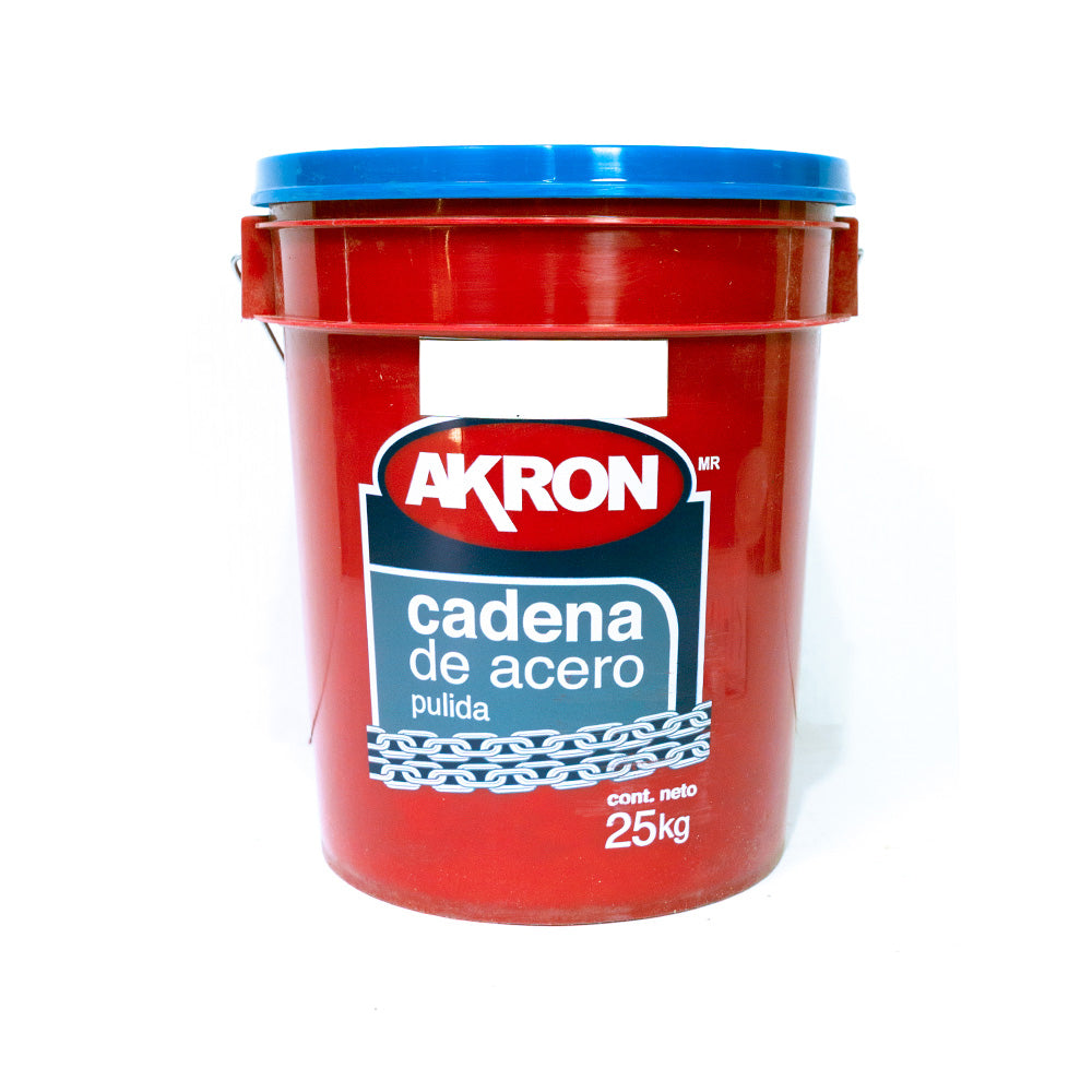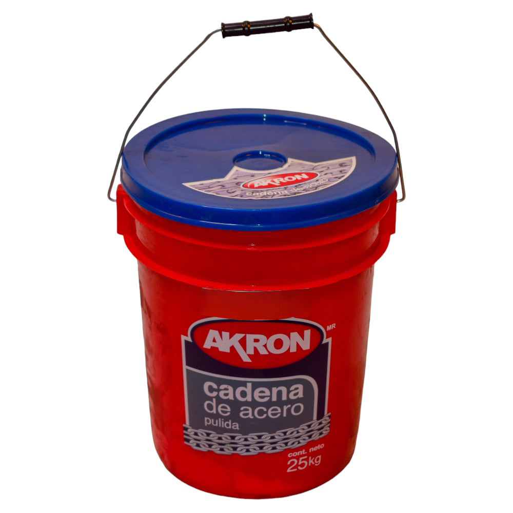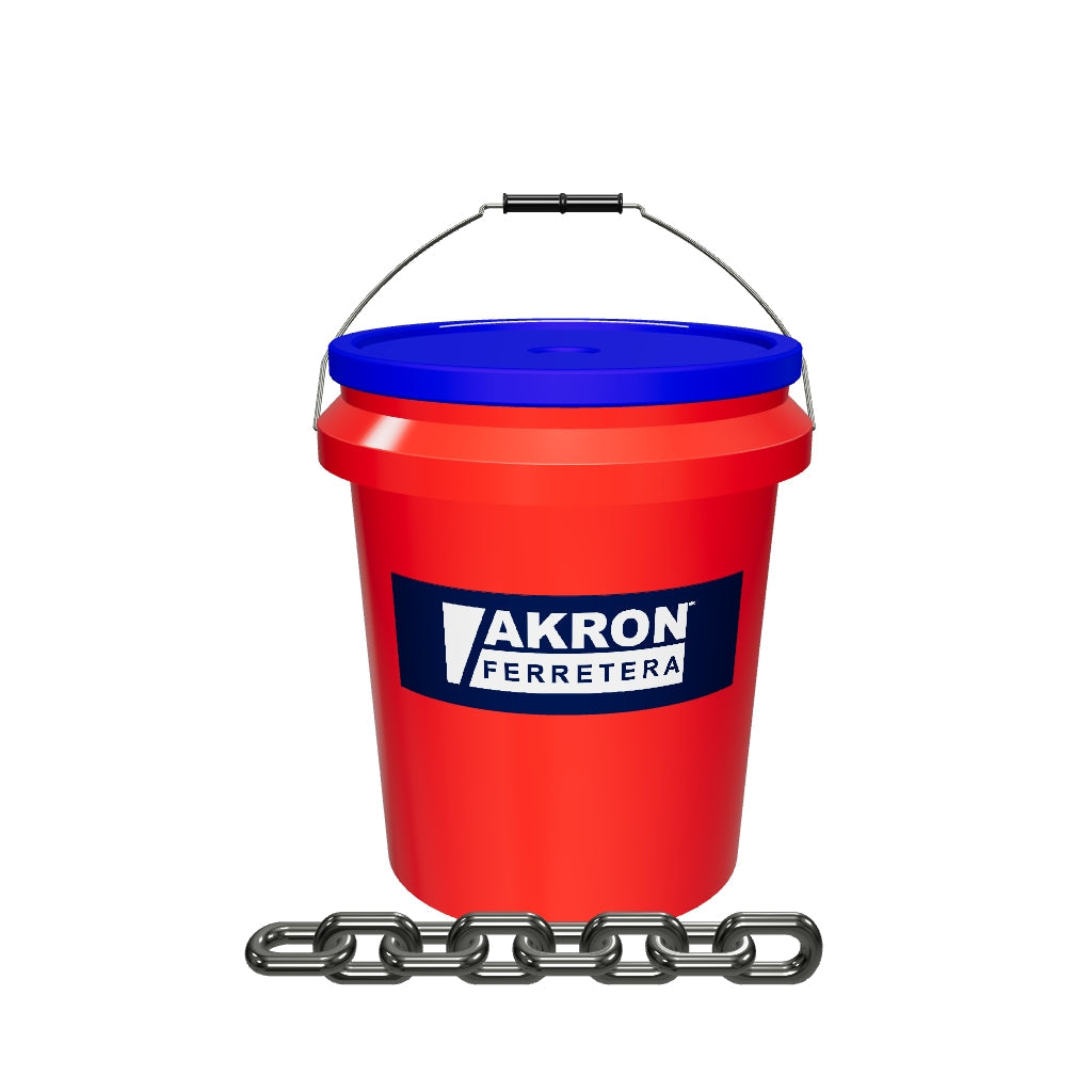 Cadena de acero pulido grado 30, electrosoldada, calibre 1/2", presentada en cubeta de 25 kg. Diseñada para aplicaciones generales y de carga ligera a media, con eslabones soldados para mayor resistencia y galvanizado para protección contra la corrosión.