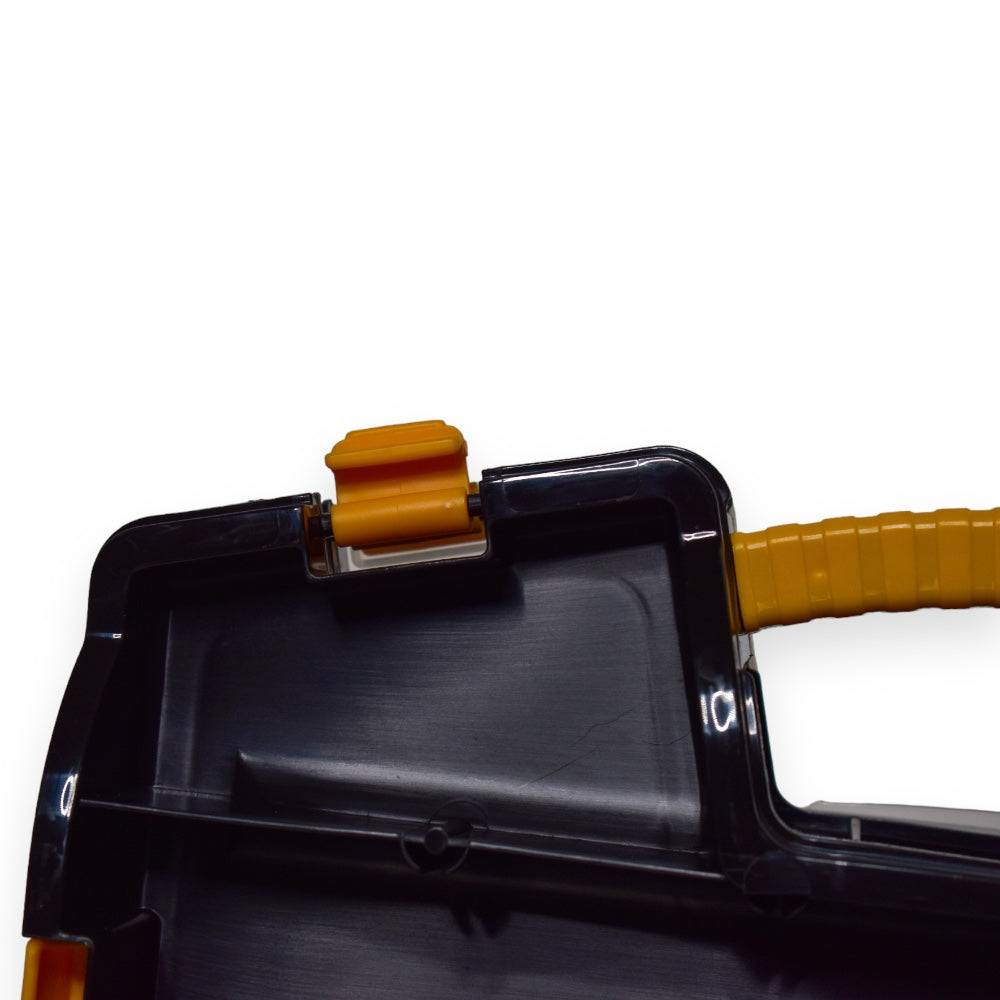 Material: Plástico resistente Compartimentos Ajustables: Sí Tapa: Doble cierre para mayor seguridad Portabilidad: Asa ergonómica para transporte fácil Durabilidad: Construcción robusta para un uso prolongado Uso Recomendado: Almacenamiento ordenado de herramientas y accesorios Diseño: Práctico y funcional