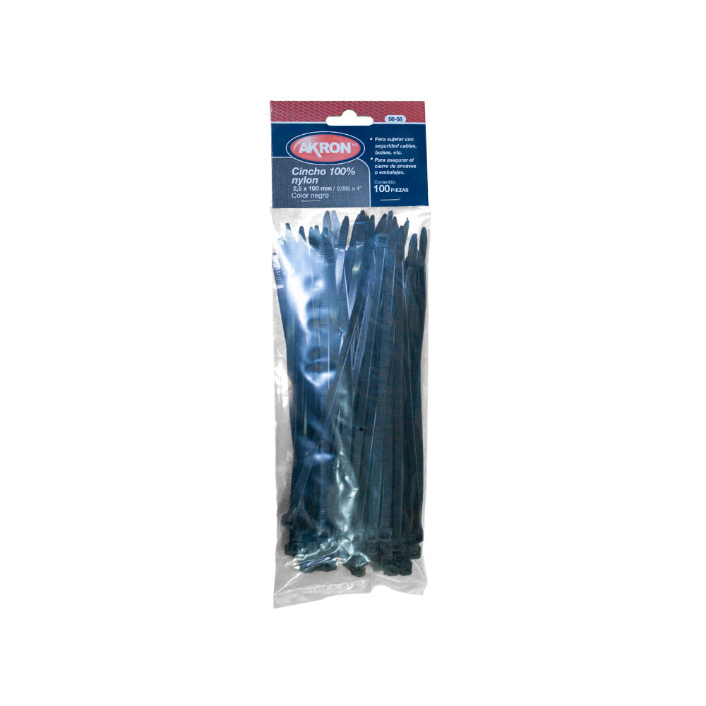 Cinchos de Plástico 2.5 x 100mm, Color Negro, 100 Pzs - Negro