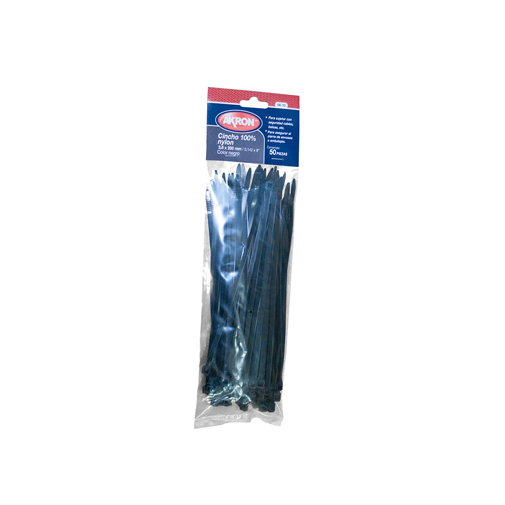 Cinchos de Plástico Akron 08-10 | Color Negro | 50 Pzs | 3.6 x 200 mm