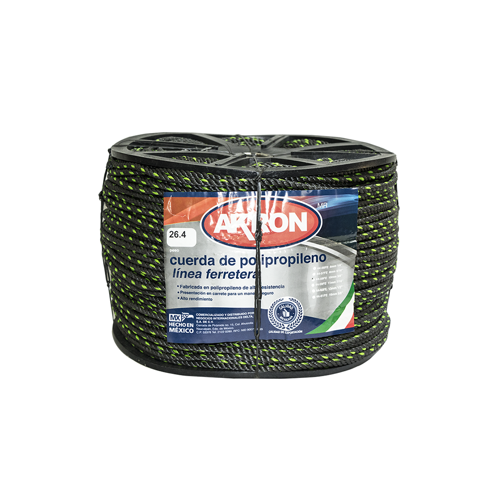 Cuerda fabricada con fibras de polipropileno reciclable, ligera, flexible y de gran resistencia. Su composición permite un uso prolongado y seguro en diversas aplicaciones, siendo resistente a la humedad, abrasión y a la mayoría de los productos químicos. Ideal para uso general, ferretería, construcción, transporte y actividades recreativas.