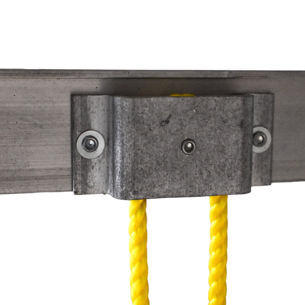 La escalera cuenta escalones antideslizantes tipo ´´D´´ y con sistema de cuerda y polea. (Excepto la de 16 Escalones), tacones de seguridad fijos fabricados con plástico antideslizantes.
