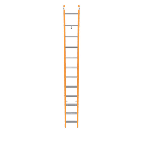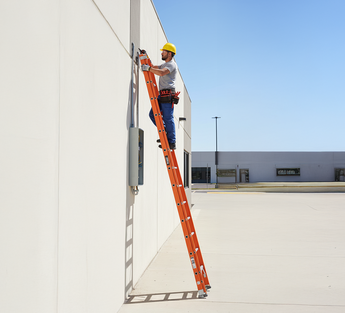 Fabricada en fibra de vidrio, la escalera es inmune a la corrosión y ofrece aislamiento eléctrico, ideal para ambientes con electricidad. Diseñada para uso doméstico, comercial, profesional e industrial pesado.