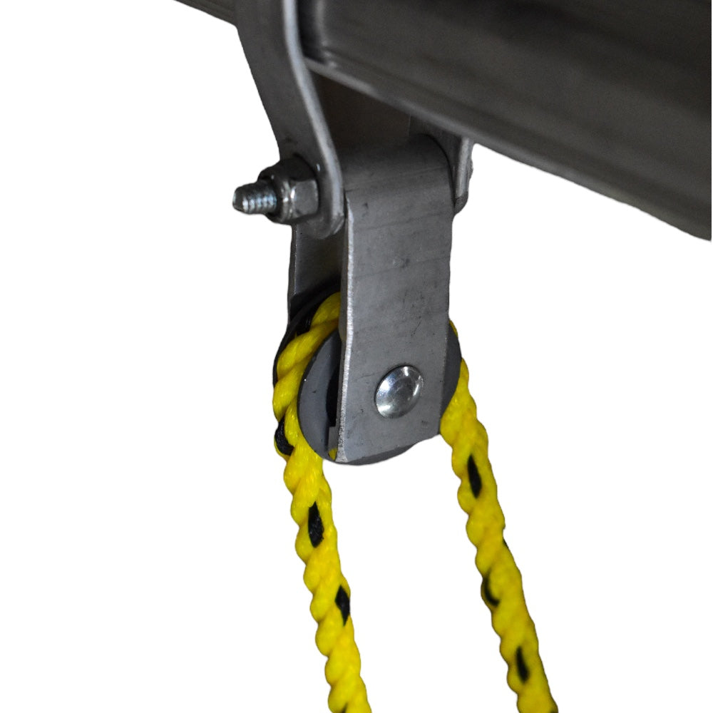 La escalera cuenta escalones antideslizantes tipo ´´D´´ y con sistema de cuerda y polea. (Excepto la de 16 Escalones), tacones de seguridad movibles fabricados en plástico antideslizantes.