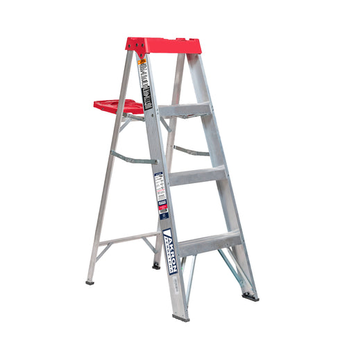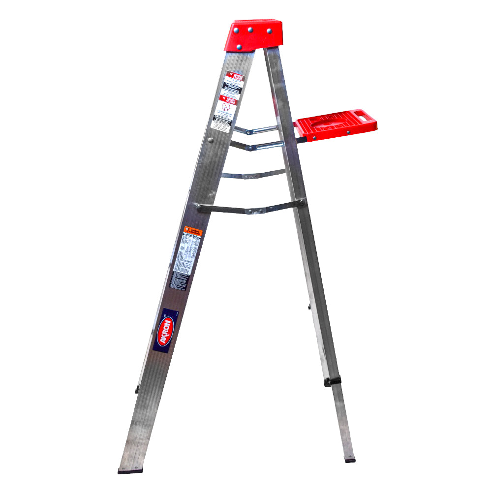 Escalera de Tijera Akron 77-10 | De Aluminio | Altura 1.15m | 3 Peldaños | Uso Comercial (Tipo III) con Plataforma y Porta Cubeta de Plástico