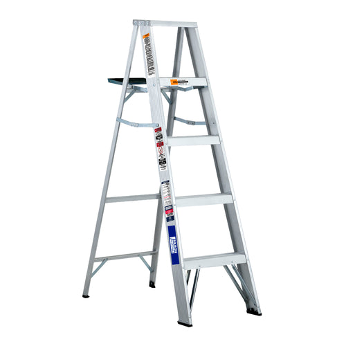 Escalera de Tijera Akron 77-14 | De Aluminio | Altura 1.44m | 4 Peldaños | Uso Comercial (Tipo III) con Porta Cubeta de Plástico