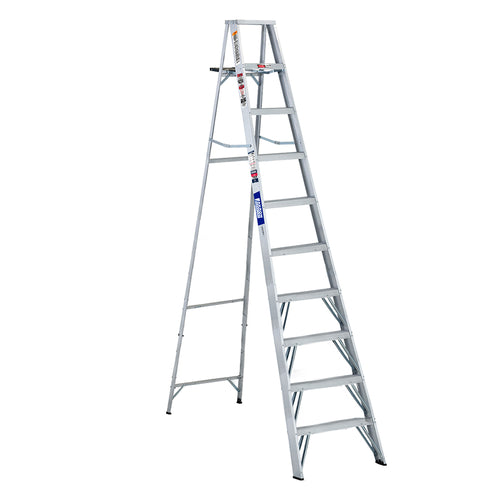 Escalera de Tijera Akron 77-27 | De Aluminio | Altura 2.91m | 9 Peldaños | Uso Profesional (Tipo II) con Porta Cubeta de Plástico