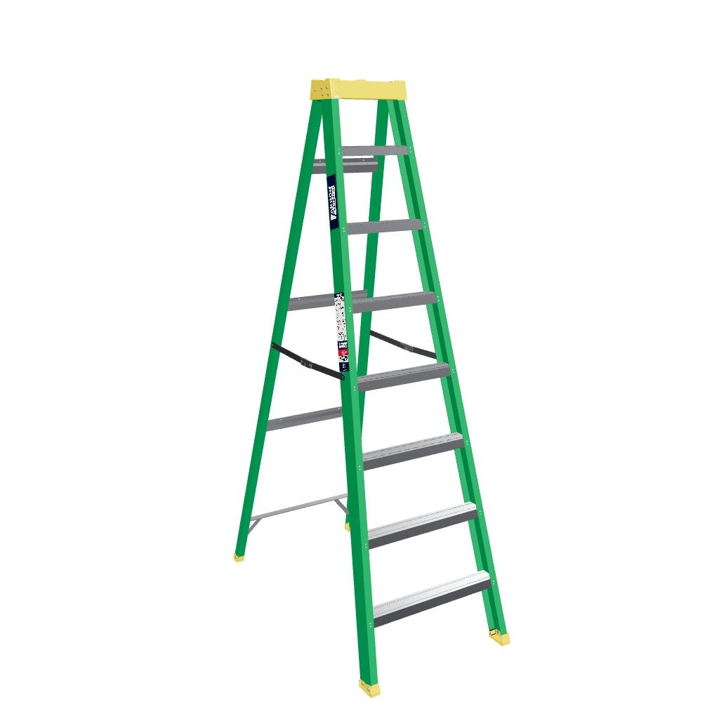 Escalera De Tijera Akron 77-91 | De Fibra de Vidrio | 2.44m | 7 Escalones | Uso Profesional | Tipo ll | Capacidad de Carga 175kg