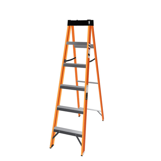 Escalera De Tijera Akron 80-93 | De Fibra de Vidrio | 1.83m | 5 Escalones | Uso Industrial Pesado | Tipo lA | Capacidad de Carga 225kg