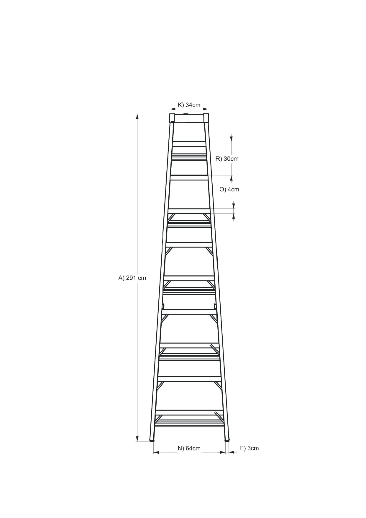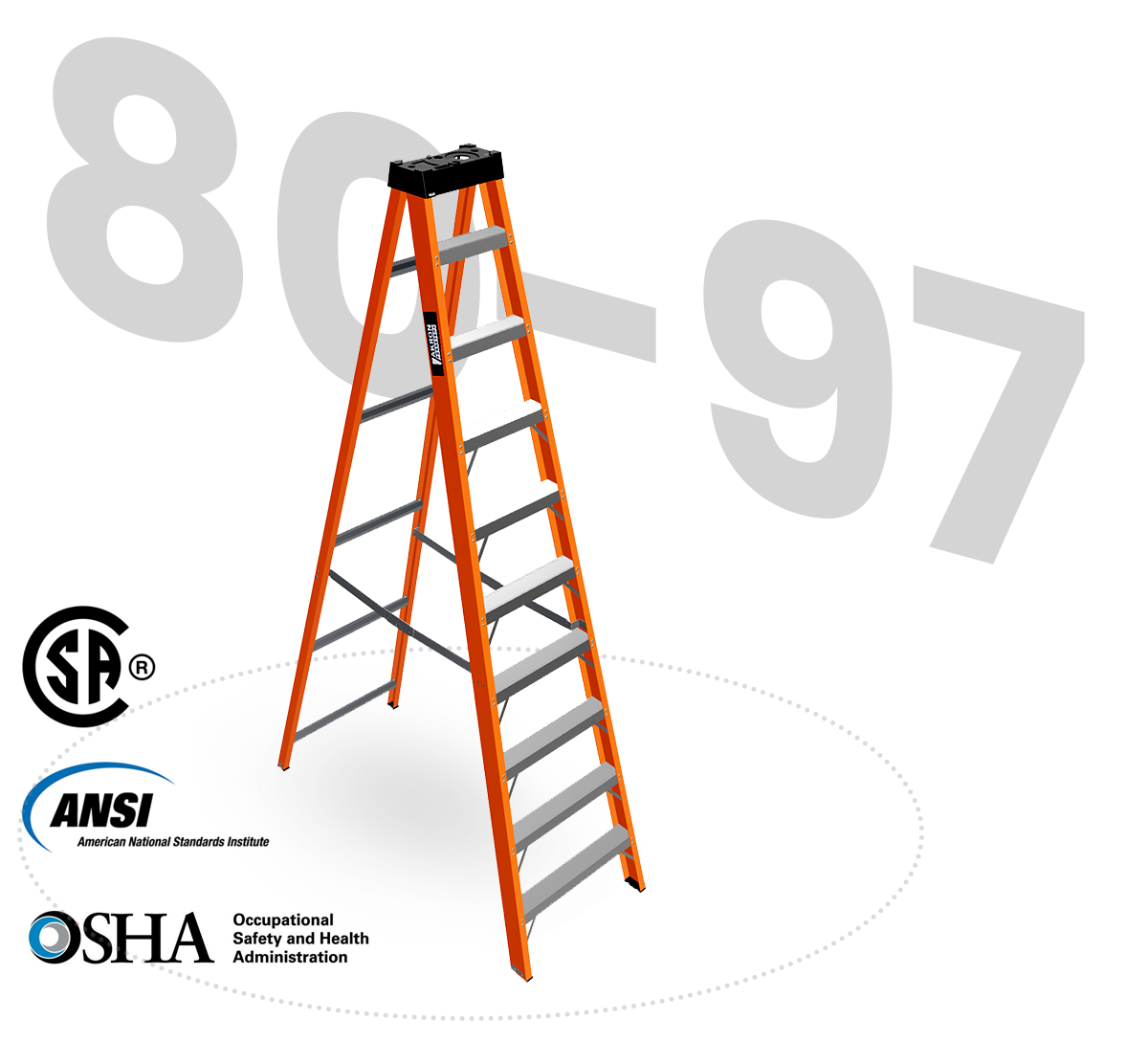 Escalera De Tijera Akron 80-97 | De Fibra de Vidrio | 3.05m| 9 Escalones | Uso Industrial Pesado | Tipo lA | Capacidad de Carga 225kg