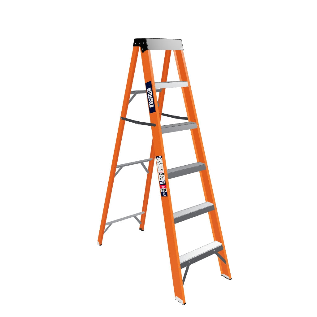 Escalera De tijera Akron 81-56 | De Fibra de Vidrio | 1.83m | 5 Escalones | Uso Doméstico | Capacidad De Carga 90kg | Plataforma Plástica