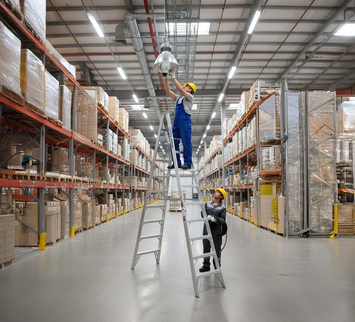 La escalera cuenta con un sistema de bloqueo que asegura su estabilidad en la posición deseada, lo que aumenta la seguridad en el trabajo en altura.