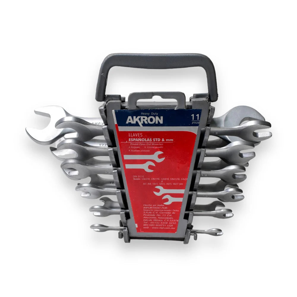 Juego de Llaves Combinadas 65-50 | 11 Piezas | Milimétricas y Estándar | Cromo Vanadio | Acabado Plateado