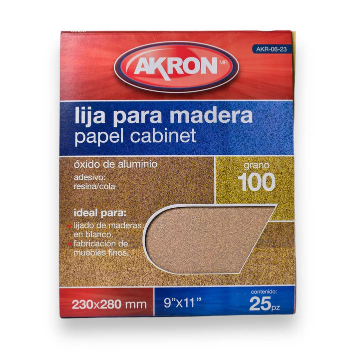 Lija de Madera Akron AKR06-23 | Grano 100 | 25 Hojas