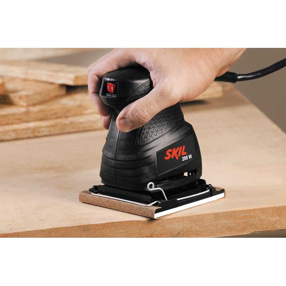 La Lijadora orbital de palma Skil 7232, con 200 W de potencia y 14000 oscilaciones por minuto es la combinación perfecta entre rendimiento y comodidad que cabe en la palma de tu mano. Su base reforzada es ideal para lijar diversos tipos de materiales, como madera, pintura y otros. Tiene un sistema robusto de sujeción para fijación de las lijas, es importante recordar que para cada material a ser lijado y tener el acabado deseado se debe usar la lija adecuada. El botón de encendido-apagado es de fácil acceso y sellado para garantiza mayor durabilidad, lo que permite que el uso de la lijadora orbital Skil 7232 sea mucho más fácil y cómodo. La empuñadura con agarre ergonómica posibilita el uso en diversas posiciones, permitiendo un trabajo menos exhaustivo. La Lijadora Skil 7232 viene lista para ser usada y acompaña 1 lija. Es indicada para los profesionales autónomos y cuenta con 2 años de garantía.