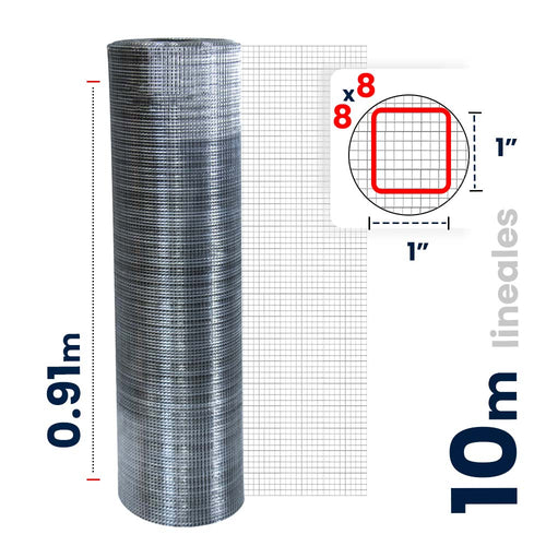 Malla Criba Ligera Galvanizada Akron 61-50 | Medida 8x8 | Largo 10m | Calibre 24